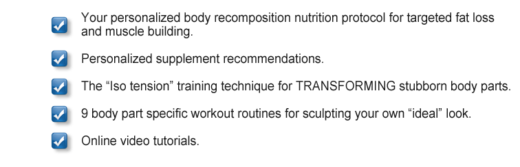 I say "Body Recomposition" because that is exactly what this protocol is designed to do - strip fat from where you need it most while adding muscle to those body parts you want to improve.